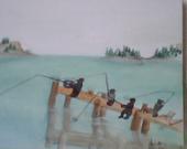 ) Bay at night watercolors
